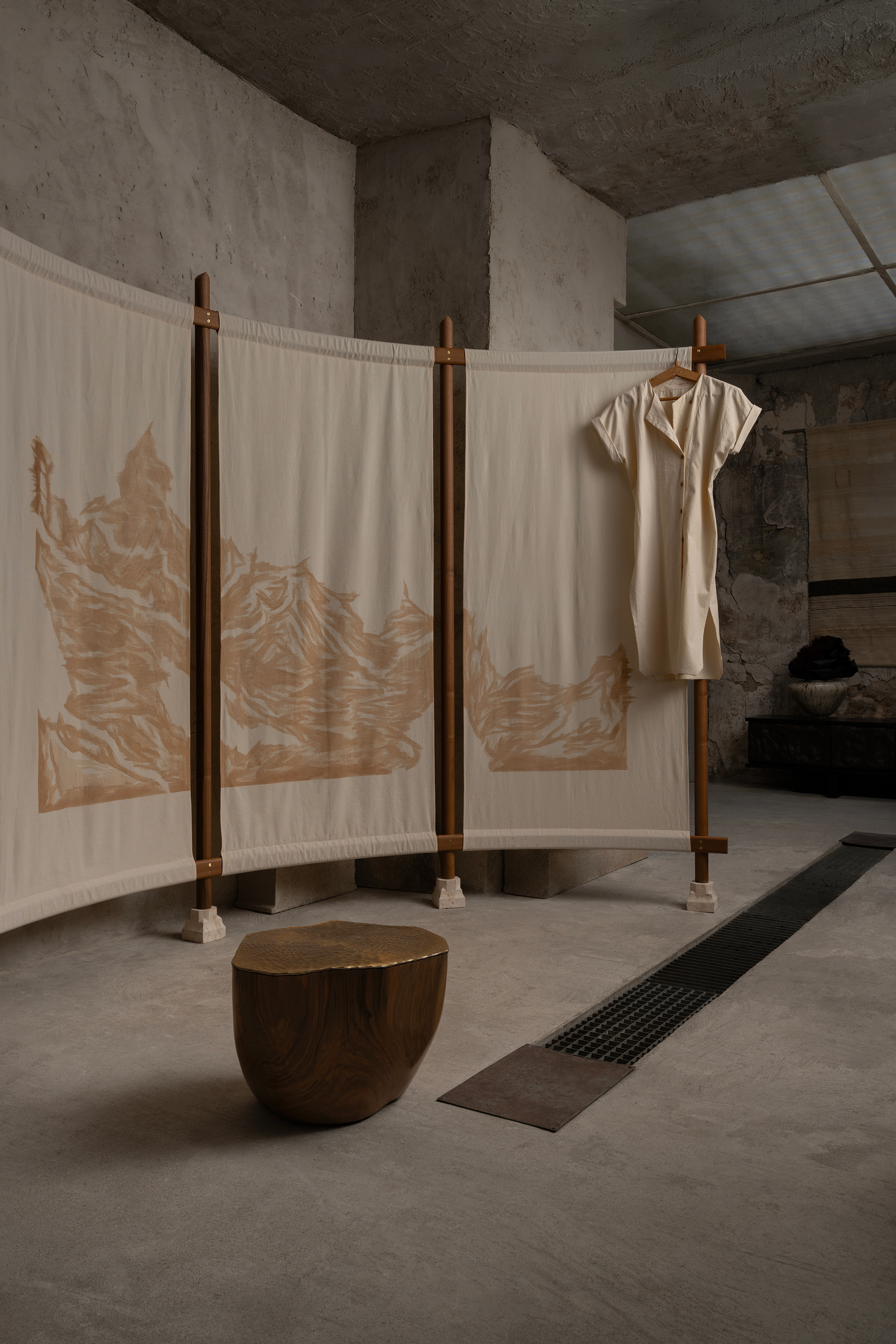 The materials used are traditional and created in the atelier; they are chosen for the richness of their inherent properties. The application of these ancient manual techniques immerses us in an appreciation of the craftsmanship itself, in the recognition of the imperfection necessary to evoke the sensory and the living.
