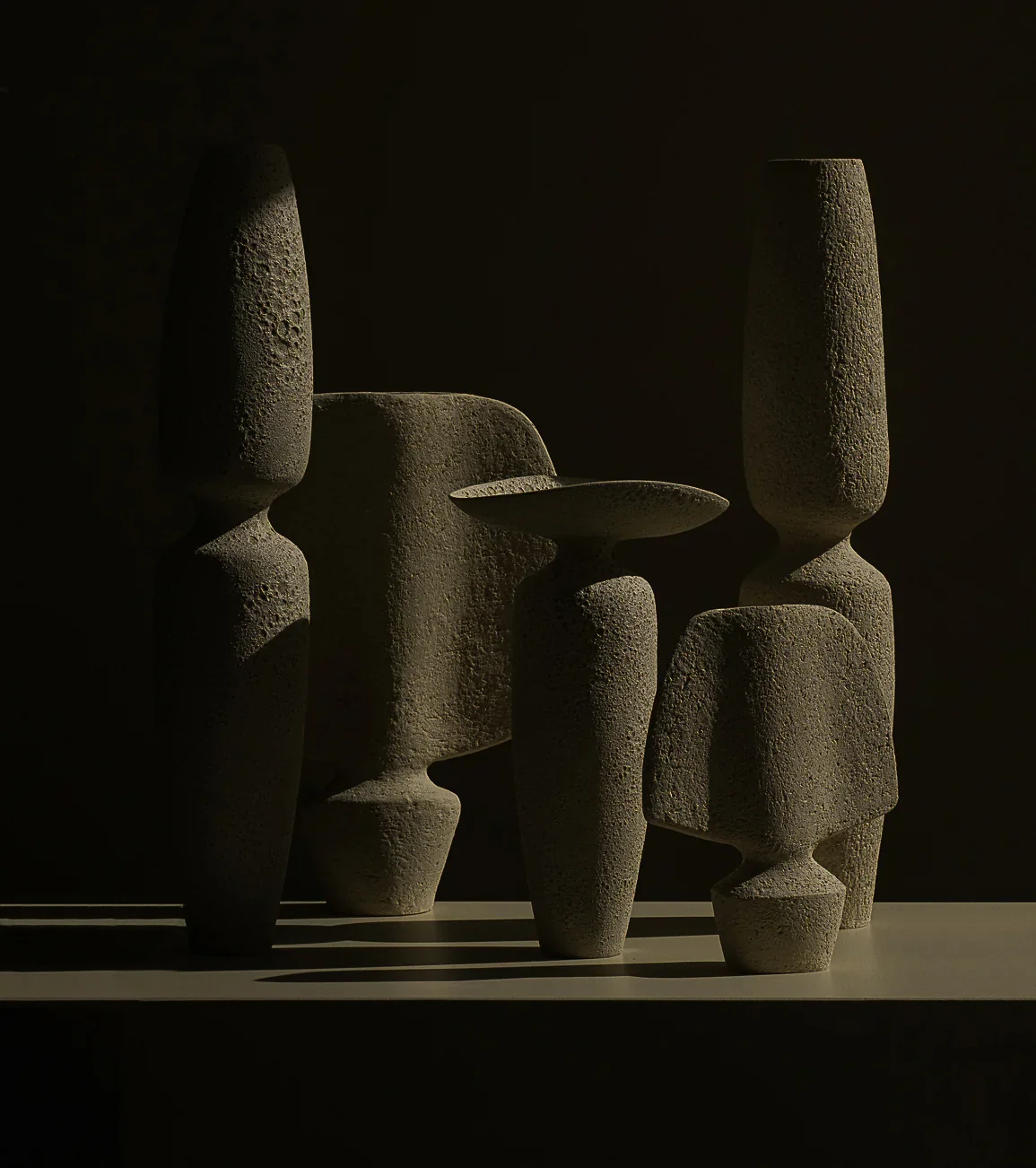 Sophie Vaidie creates objects that straddle the line between the utilitarian and the decorative, shaping them using pinching and modeling techniques. Her work navigates between familiar figures and a whole vocabulary of forms that seem to come from another world. Her forms play on the fine line between function and decoration, opening up new horizons—blending familiar and archaeological shapes with oriental and retro-futuristic accents—like the remnants of a civilization whose artifacts have resurfaced. She is constantly seeking out new structures and materials to experiment with: wood-fired kilns, gathered clays, ash glazes... Sophie plays with formats and scales, creating variations in form, exploring an idea from every angle and in every size. Candleholders sometimes become lamps, vases sometimes tables. The subtle relationship between the object and its use is enhanced by the range of shapes, clays, and glazes. The muted tones echo a free language, a silent exploration of a narrative with many facets.